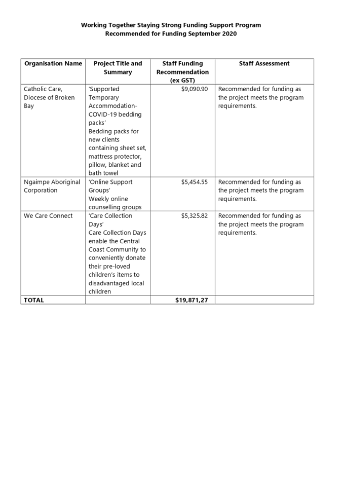 Attachment 1: Working Together Staying Strong Funding Recommended............. 17