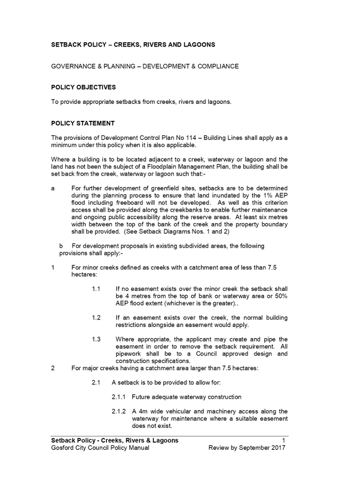 Setback Policy - Creeks, Rivers & Lagoons Policy