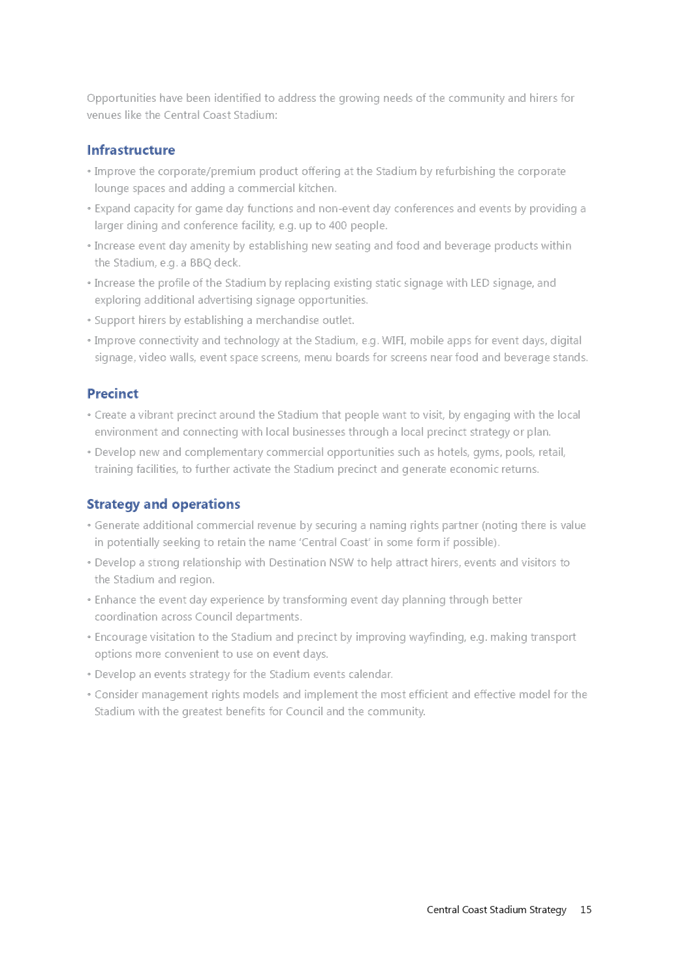 Attachment 2: Central Coast Stadium Strategy Final......................................................... 197