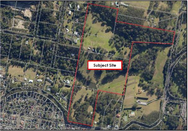 The site is located on the northern side of Avoca Drive between Picketts Valley Road and