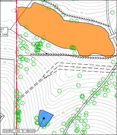dam/water storage on site. The levels vary from about RL 40m at the southern side boundary