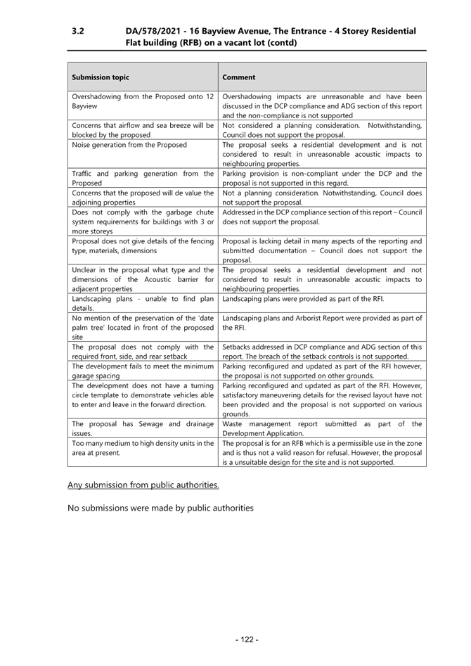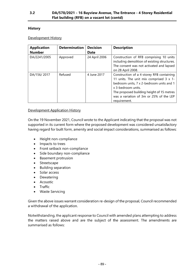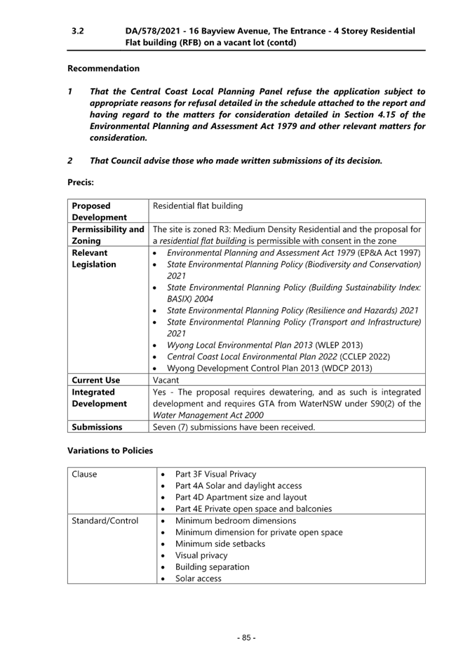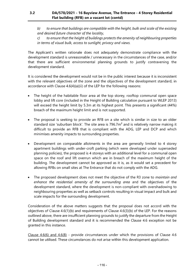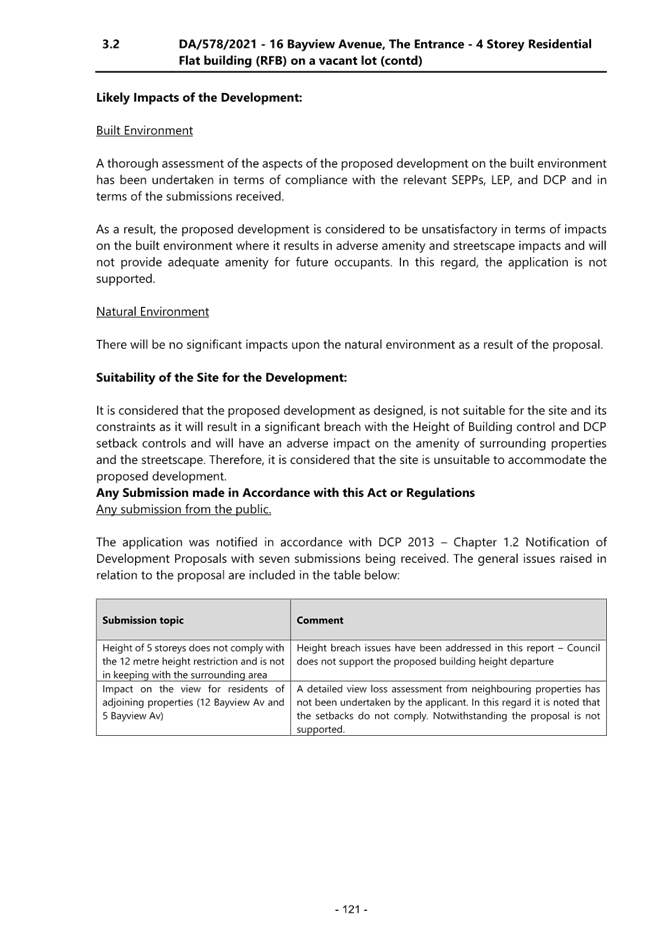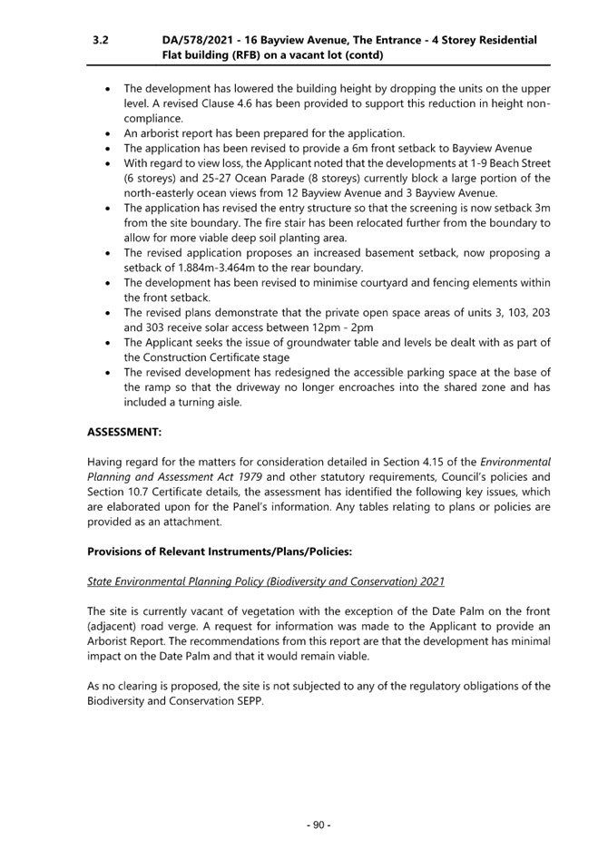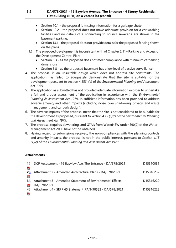 2.1 DA/578/2021 - 16 Bayview Avenue, The Entrance - Construction of a residential flat building (12 Units) and basement parking................................................................................................................. 4