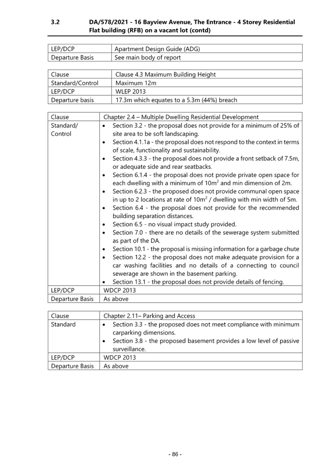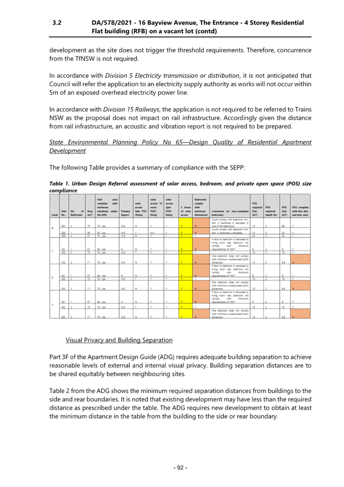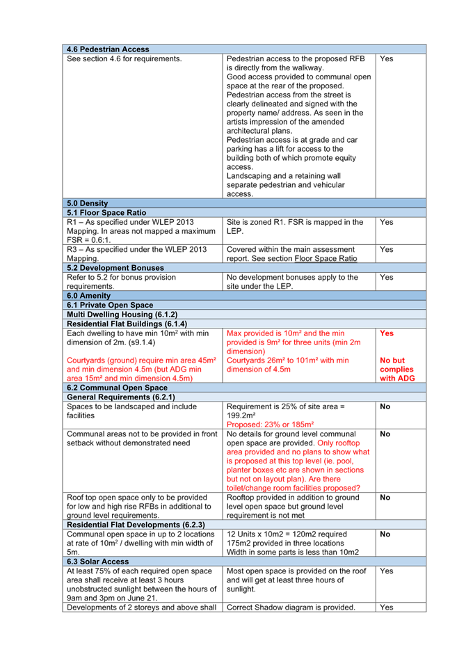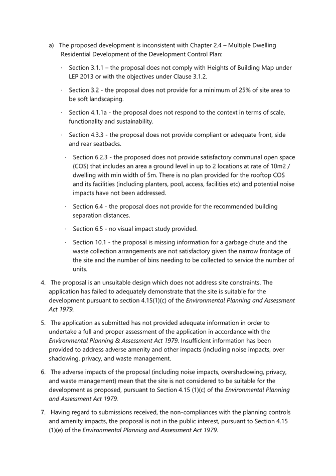 2. Non-compliance with Apartment Design Guidelines (ADG) requirements;