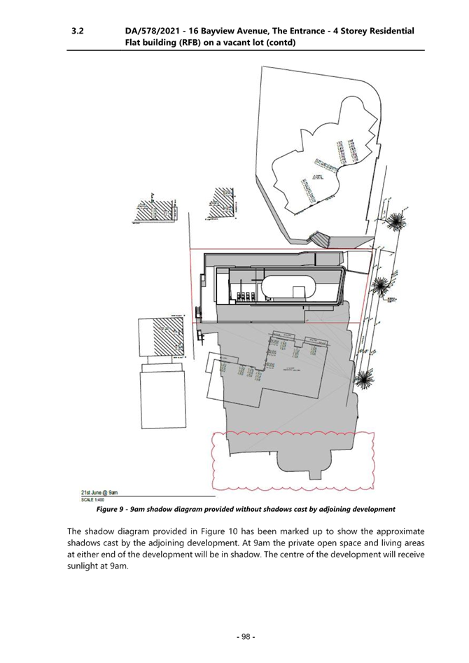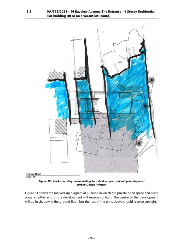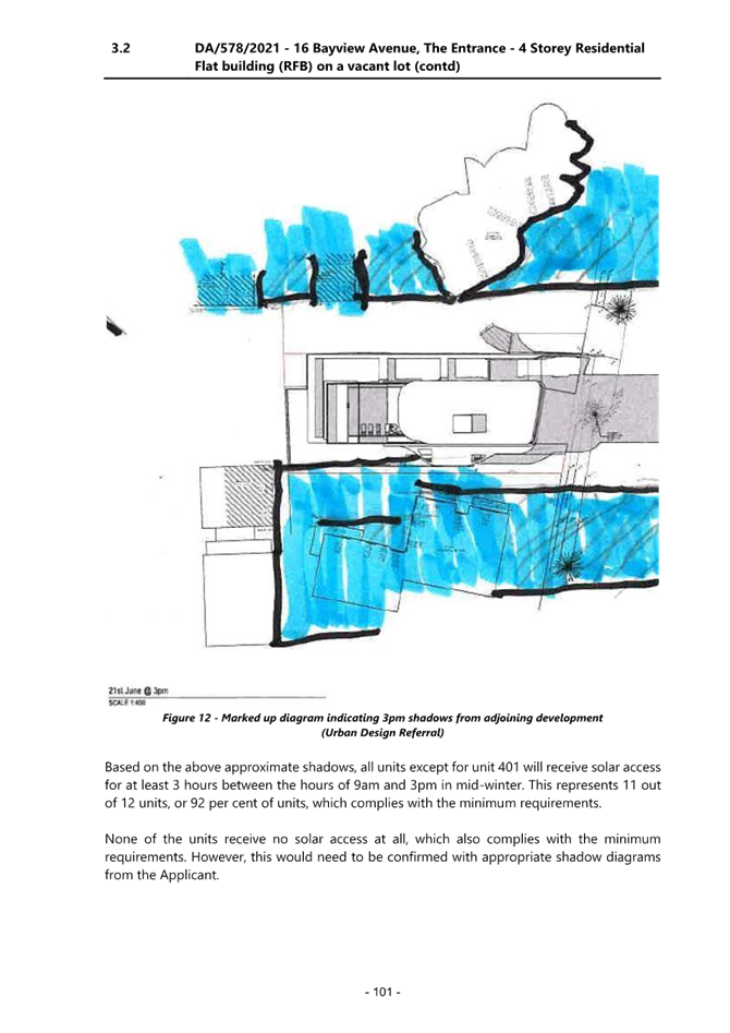 4. Further information relating to overshadowing impacts from developments to the north is required to fully assess amenity issues on the site and adjoining sites to the south. Shadow diagrams should be provided addressing the current proposal and a height compliant proposal.