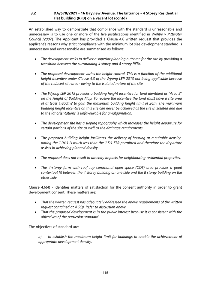 1. Non-compliance with the mapped building height under Wyong Local Environmental Plan 2013;