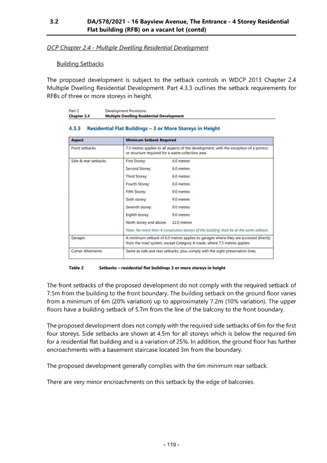 3. Non- compliance with Wyong Development Control Plan 2013, particularly setbacks and building separation; and
