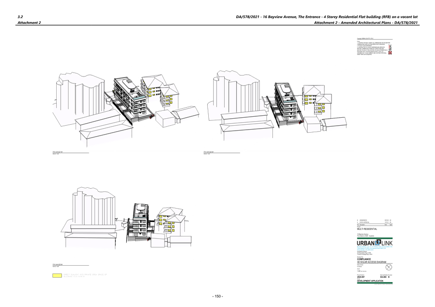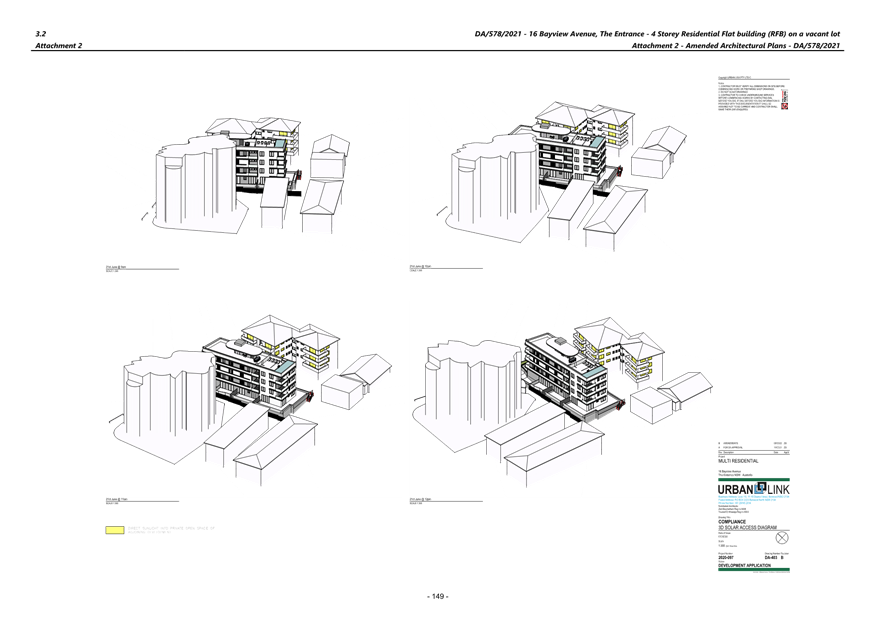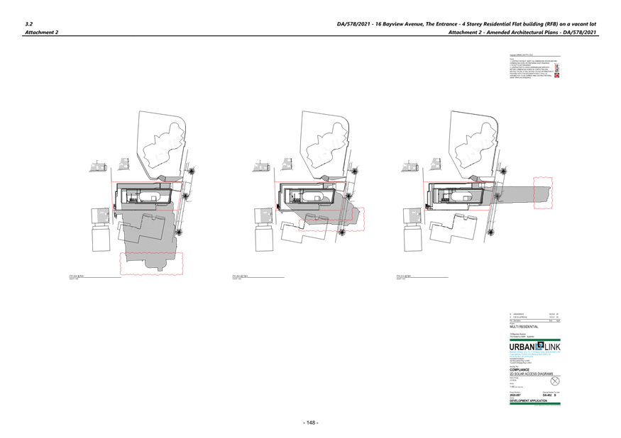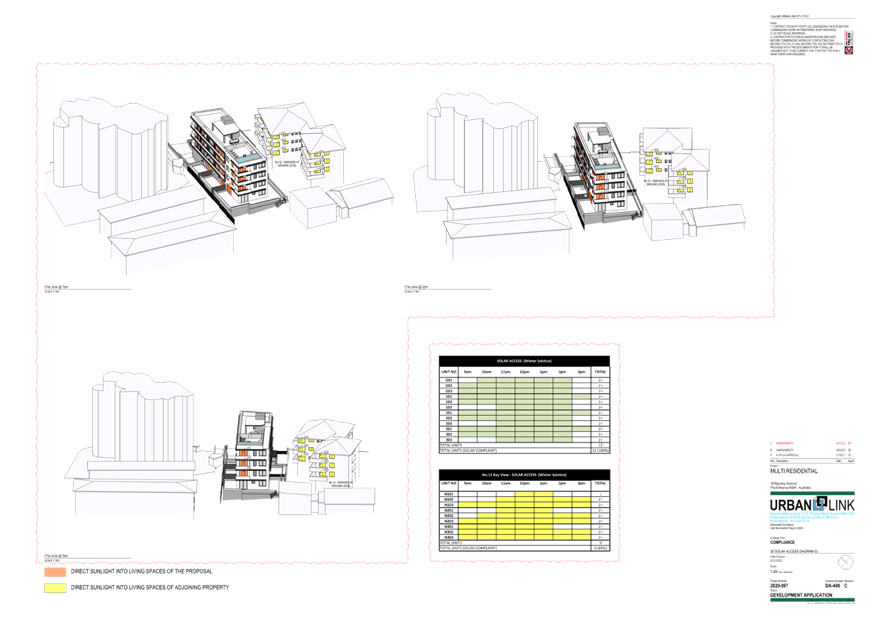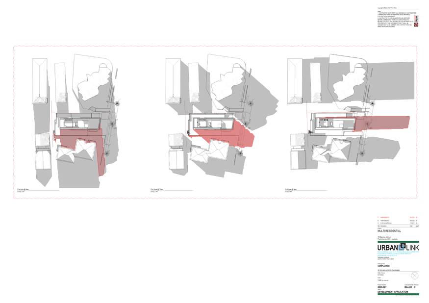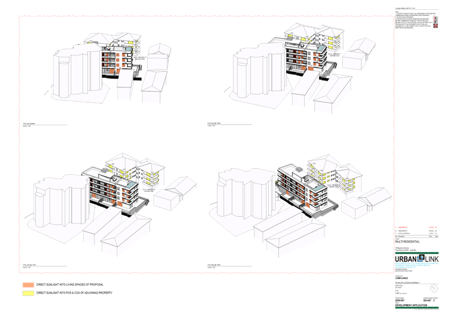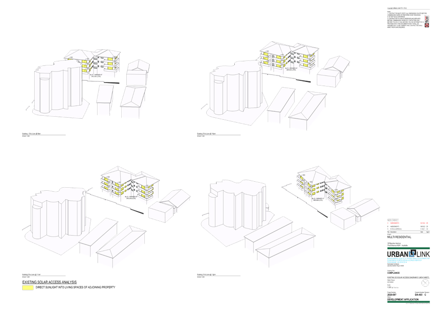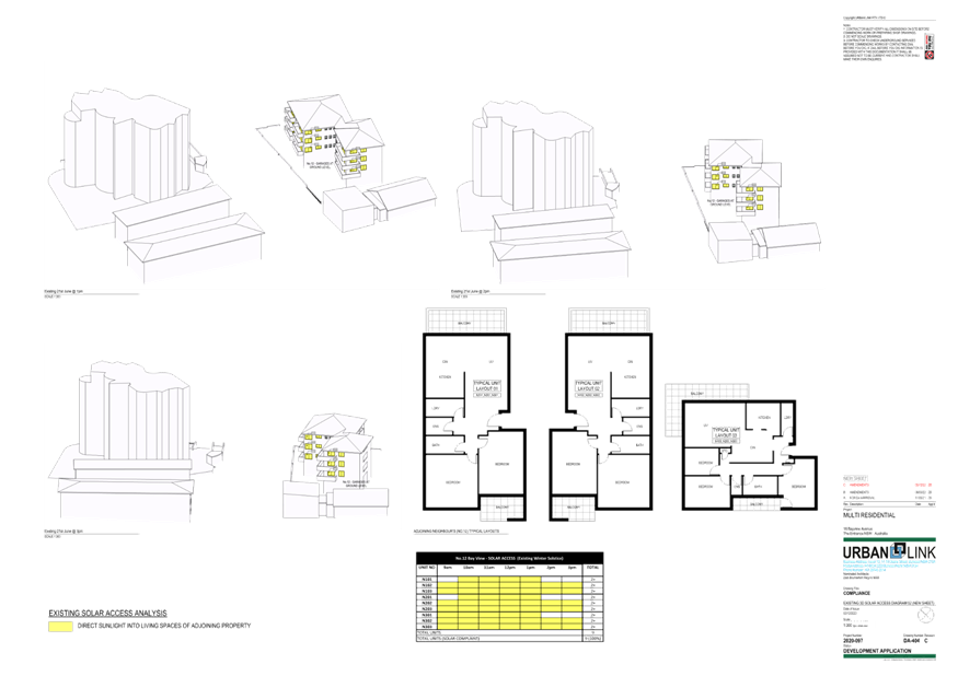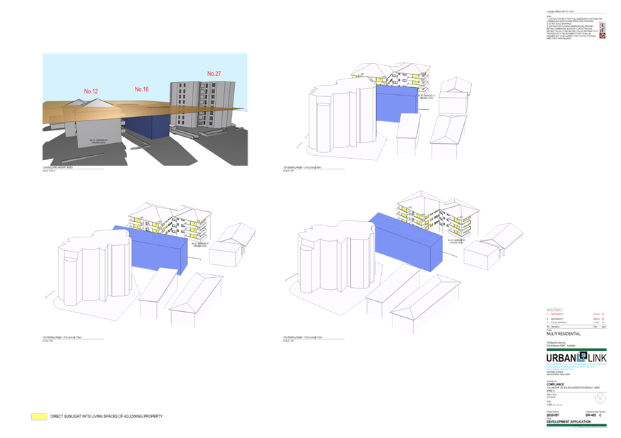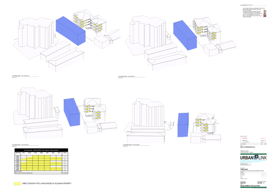 (Note: Additional shadow diagrams were provided. A 12m height 3D Solar access diagram has been provided (refer plans DA-405 and DA-406 Revision C)).