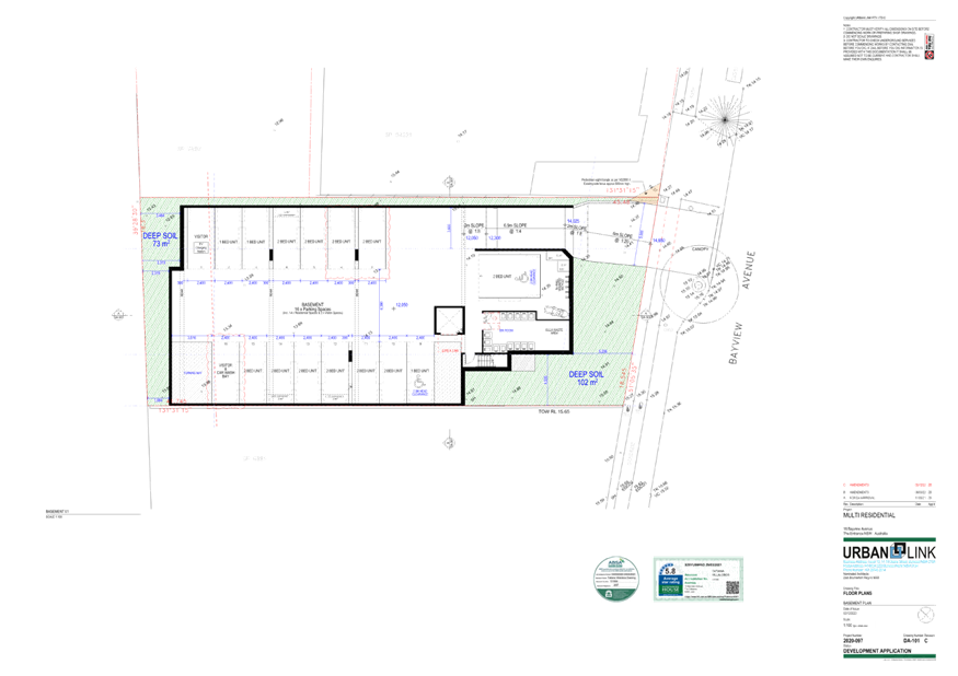 (Note: Plan DA-101 Revision C has been amended to include an electric vehicle charging station in visitor space 1).