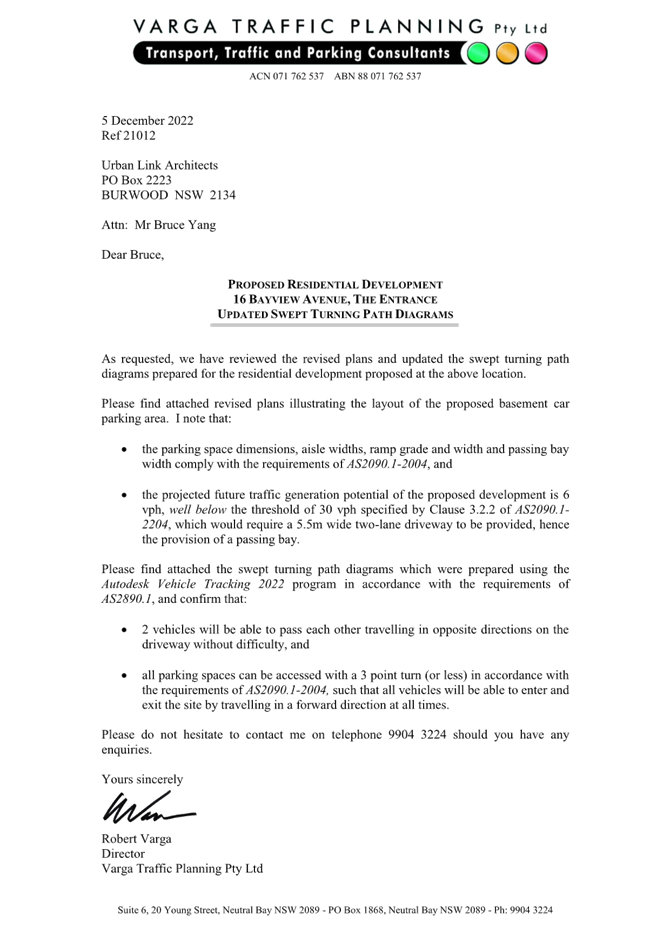 Letter Response - Traffic - 16 Bayview Ave The Entrance_PAN-98582 - DA/578/2021 |