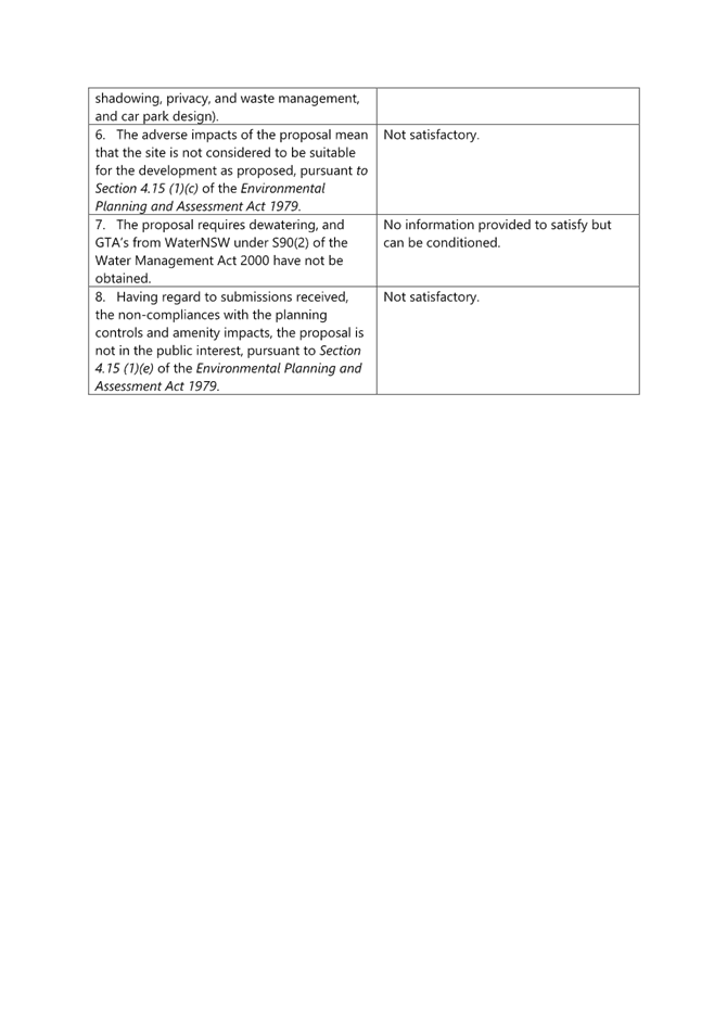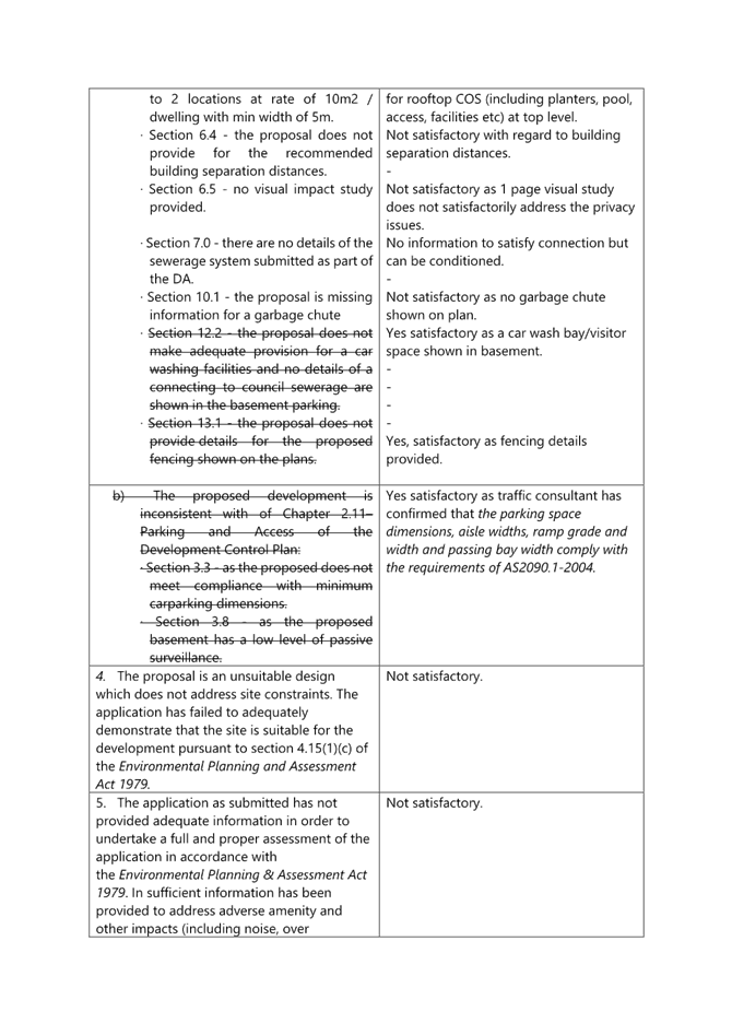 Included in Attachment 6 is a table that assesses the amended proposal against the original reasons for refusal. Revised reasons for refusal following consideration of the amended plans and information have also been included (in Attachment 7).